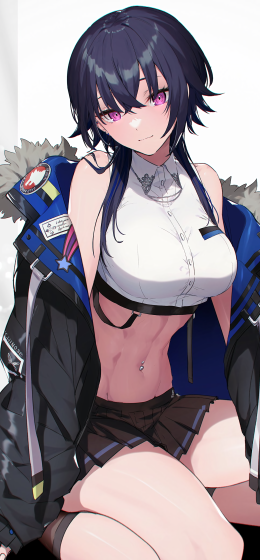 麻匪 女仆 黑色直发长发白色衣服动漫美女手机壁纸